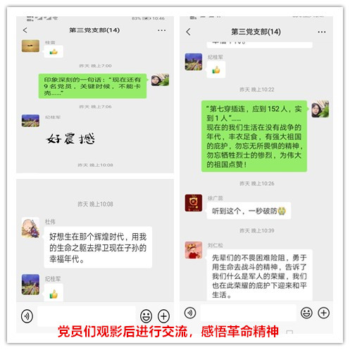 观影结束后,党员们的心情久久不能平复,纷纷表示,如今的繁华盛世、国泰民安,正是英雄们负重前行乃至用生命换来的,在今后的工作当中,大家将学习志愿军将士们钢铁般的战斗意志,坚定理想信念,践行初心使命,立足2022新起点,谋求工作新发展,共铸公司新辉煌!