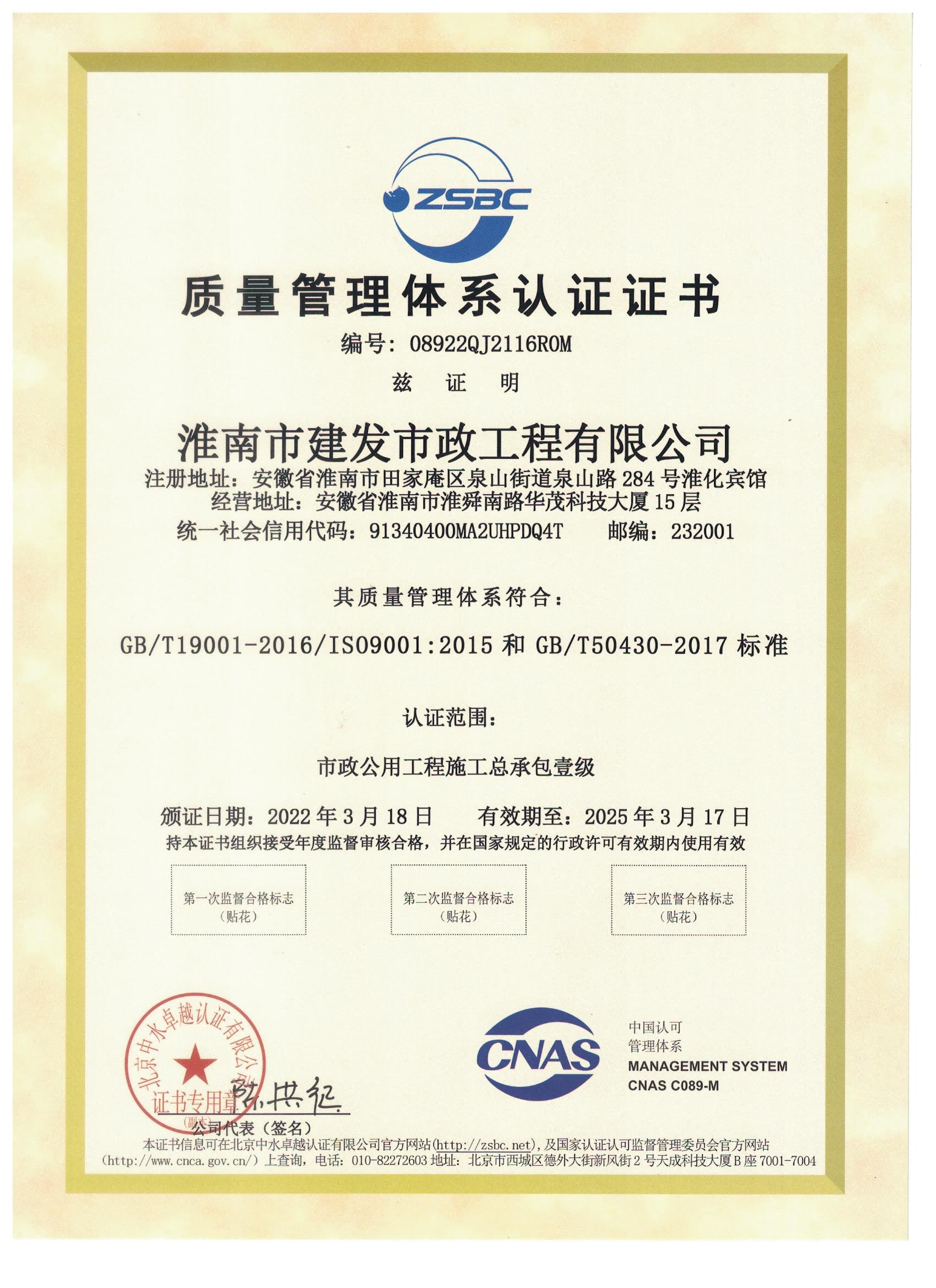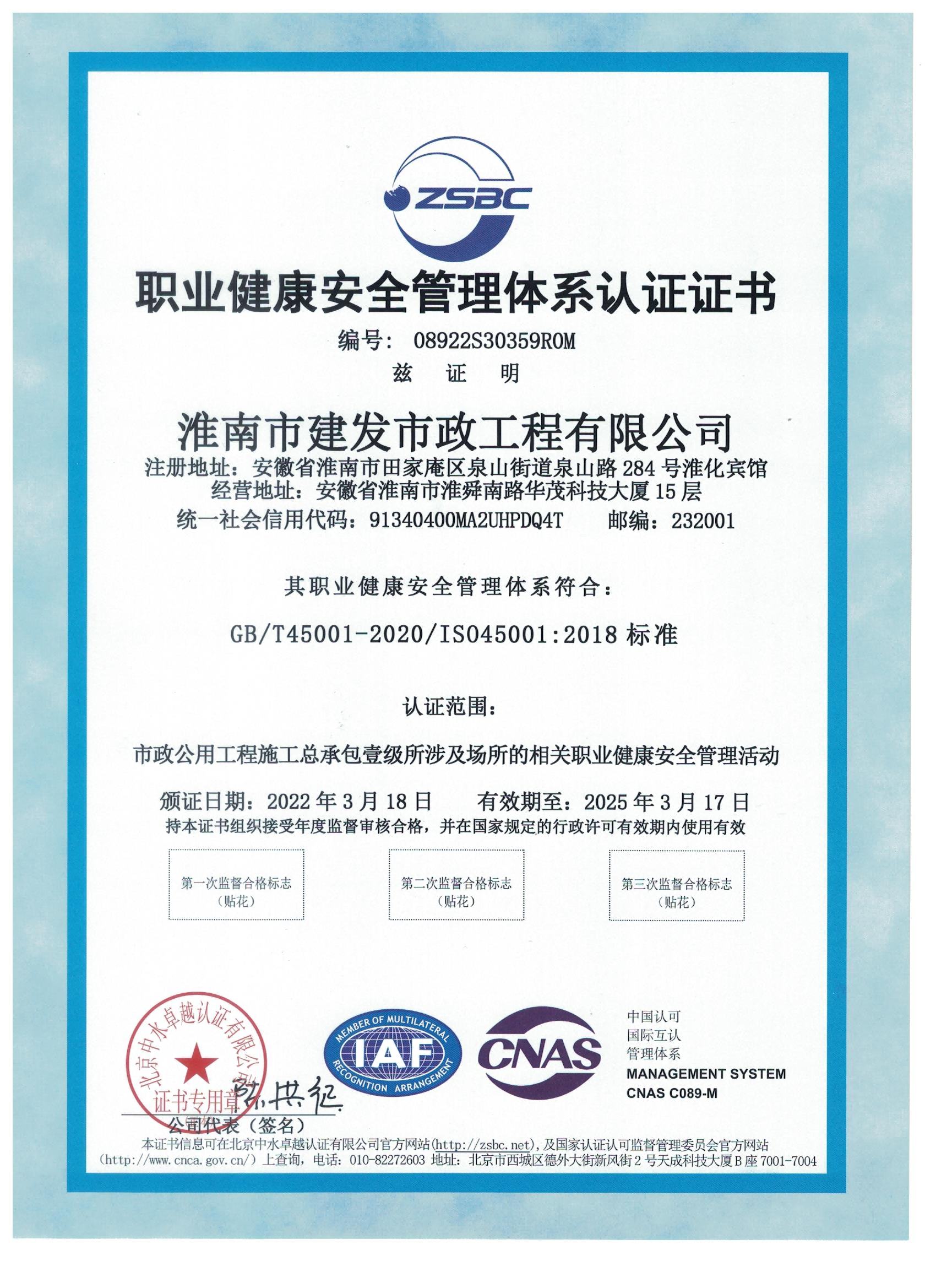 近日,公司收到北京中水卓越认证有限公司核发的ISO9001:2015质量管理体系、ISO14001:2015环境管理体系及ISO45001:2018职业健康安全管理体系认证证书,标志着我司顺利通过2022年度“三体系”初审认证。