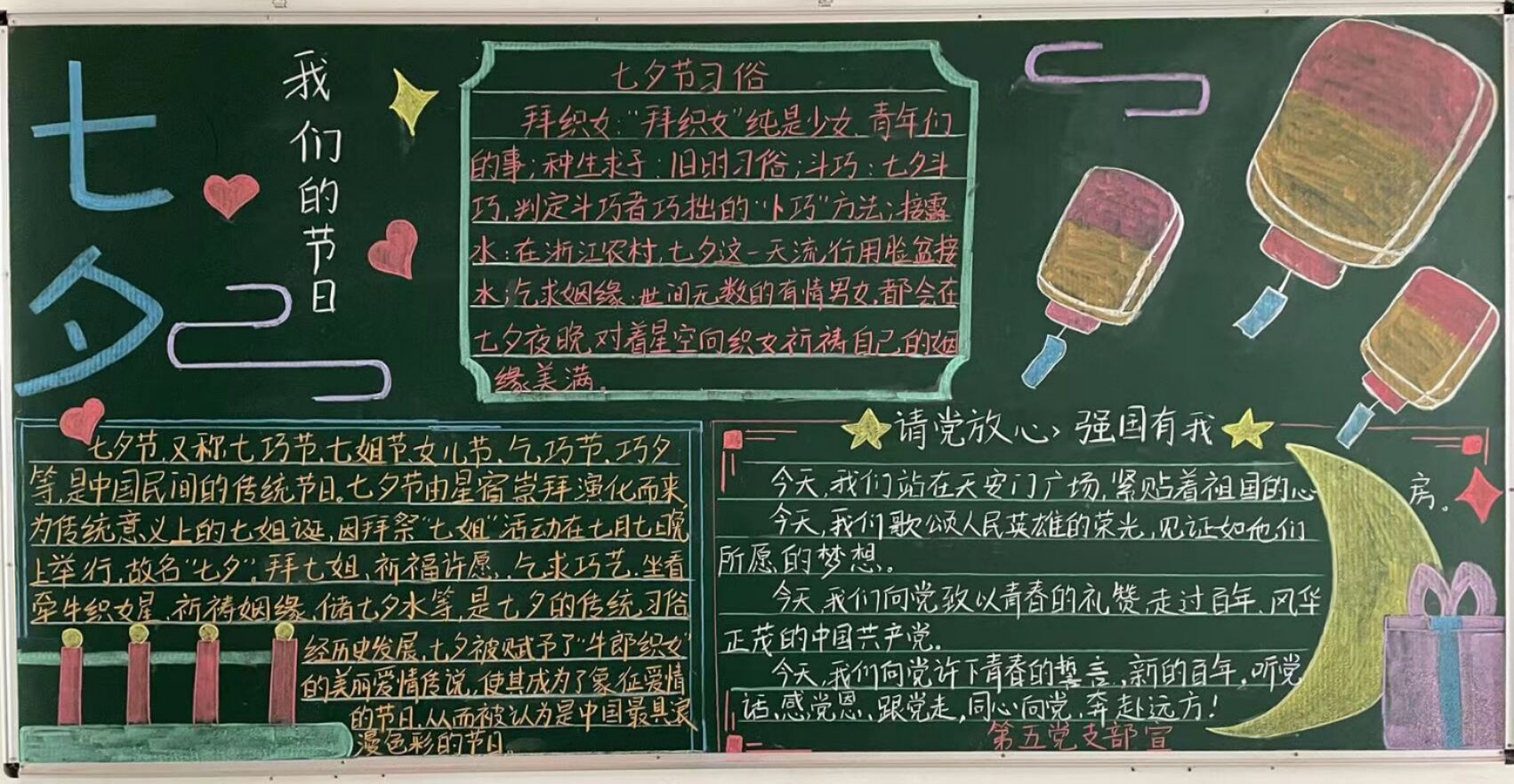 同时,支部还利用黑板报宣传七夕节的历史渊源和风俗习惯,引导职工对传统节日文化的认同感,坚定文化自信。
